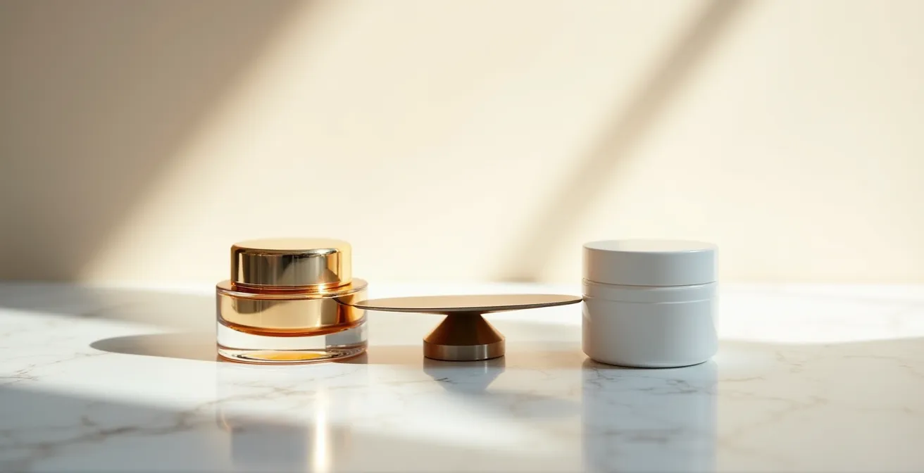 Als Produktentwickler in der Kosmetikindustrie kenne ich die Diskussion von innen. Die pauschale Antwort „Teuer ist nicht immer besser“ greift zu kurz. Sie ignoriert die Nuancen, die eine Formulierung entweder zu einem hochwirksamen Instrument oder zu einer überteuerten Feuchtigkeitspflege machen. Es geht nicht nur um einen einzelnen „Wunderwirkstoff“, der auf der Verpackung prangt. Der wahre Wert liegt in der gesamten Formulierungsarchitektur: der intelligenten Kombination aller Inhaltsstoffe, dem sensorischen Erlebnis bei der Anwendung und der Stabilität der Wirkstoffe bis zum letzten Tropfen.